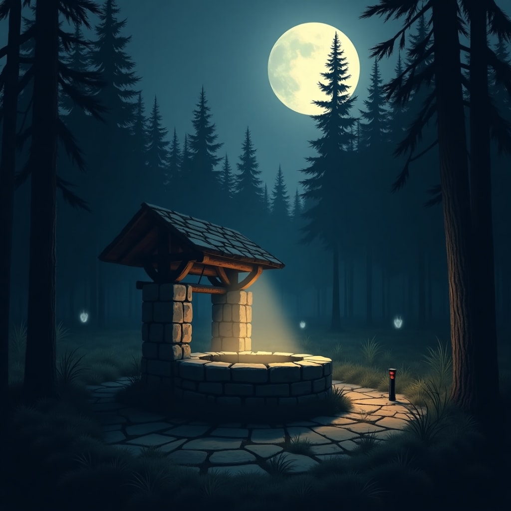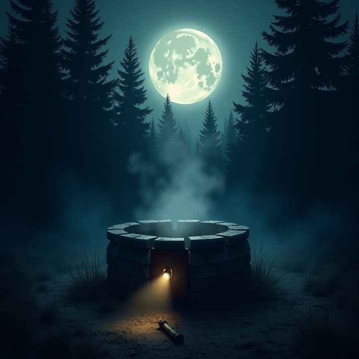 They reached the clearing near midnight. The air was heavy, the kind of silence that presses against your ears. The grate over the well was still there, barely holding on to the crumbling stone.
