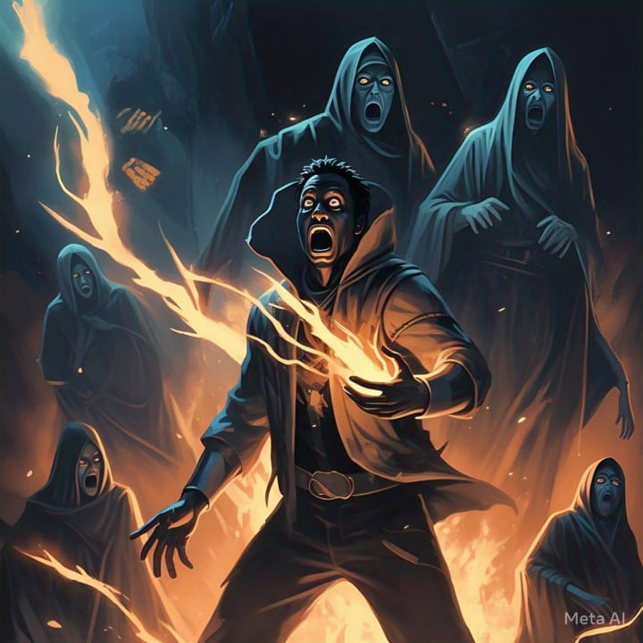 But then, from behind them, there was a sudden explosion of movement. Hassan darted forward, pushing Dima out of the way just in time to dodge a flash of energy that surged from one of the cloaked figures. The blast sent Dima flying backward, his head slamming into the stone. For a moment, the world swirled into darkness.