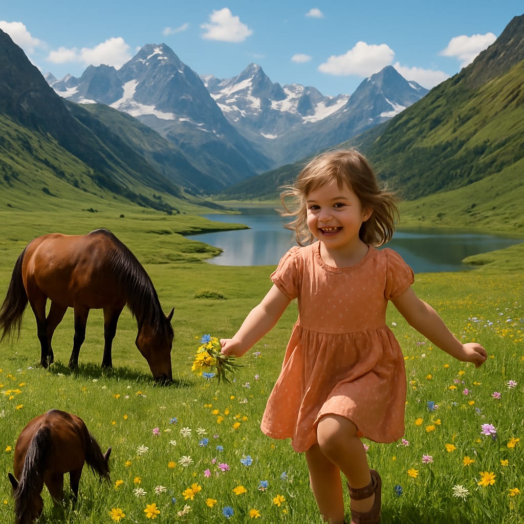 And so, the children still run in the meadows, the horses still graze, and the mountains still whisper. And if you’re very still, on a morning when the light is just right and the breeze gentle, you might hear Elara’s voice, calling you to see, to feel, to listen.
