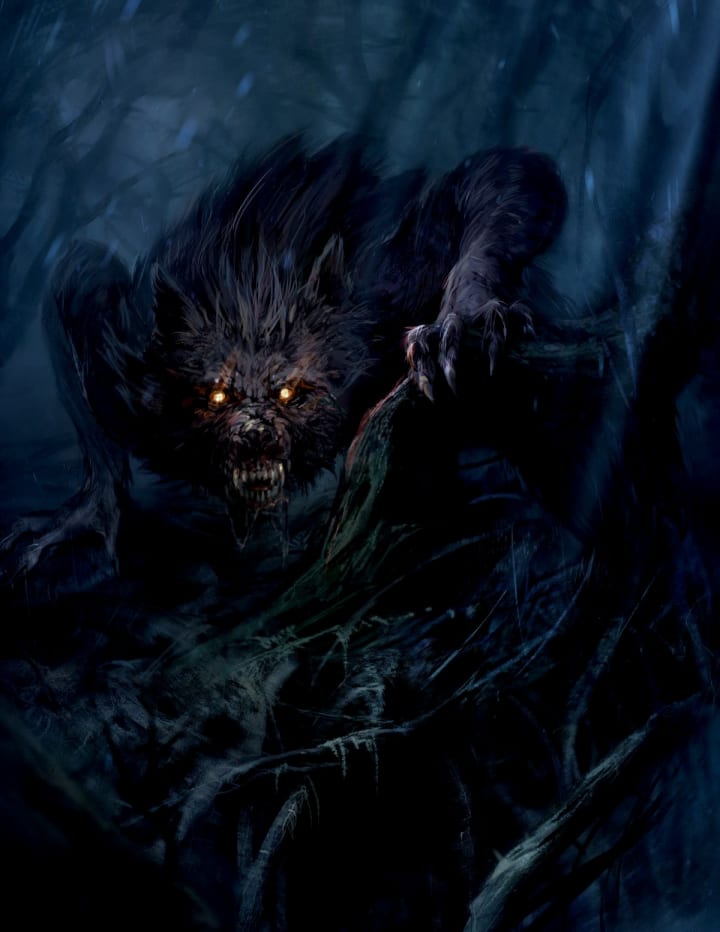 This little shaggy dog opened its mouth. Its jaw unlocked and opened wide enough to see rows and rows of razor-sharp teeth. Its bones seemed to grow instantly and its skin stretched. It slowly got bigger and bigger. The matted fur was now barely enough to cover its skin. This little dog that Emily had been playing with for days was now a large wolf and bear hybrid. It had massive paws with long claws, and the mouth now fit the size of the creature as it pointed its nose in the air to let out a long deep howl.
