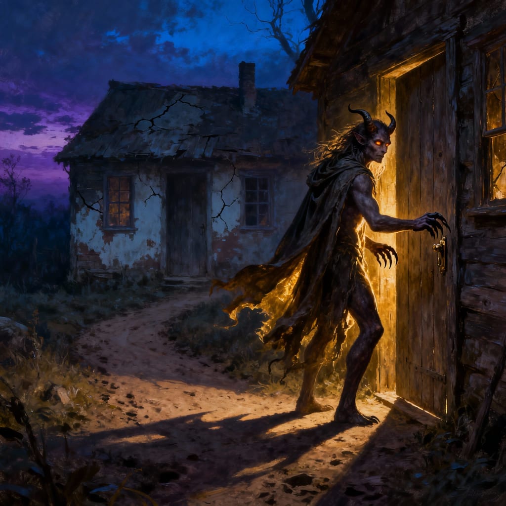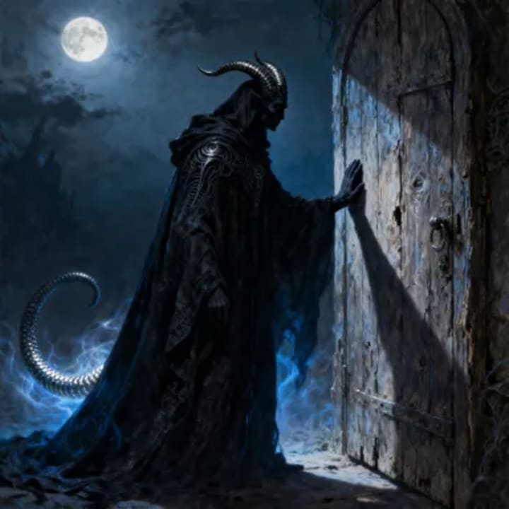 Shrugging my shoulders, and in a daze, I floated to the door. I opened it, and the devil was standing there.