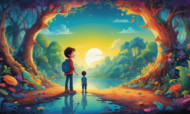 Being Curious, she slid down a long, winding staircase. Her heart was pounding with excitement. So lightly did she land in a park of grass and trees. There were children playing, and couples laughing, with the sweet fragrance of flowers blooming into the air. Still, as she watched on, she saw that a young boy sat alone upon the swing, and tears ran down his face.