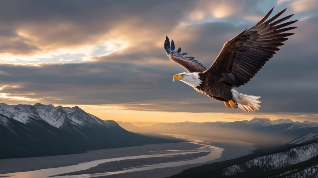 High above the emerald forests and snow-capped peaks, where the air was thin and the clouds drifted like white sails, an eagle named Arion lived in solitude. His wings stretched wider than the span of two men, his feathers gleamed bronze under the sun, and his eyes, sharp as polished amber, could pierce the distance of valleys and rivers below.
