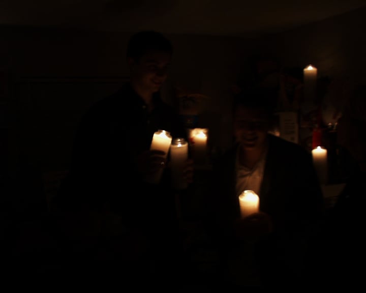 The whole house went suddently dark. The TV snapped off. The music stopped. My sister-in-law screamed.