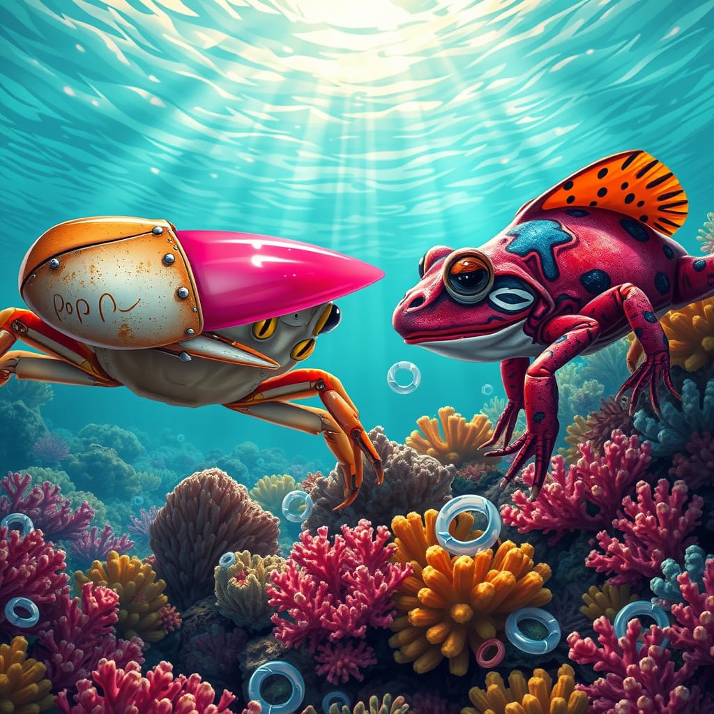 Author's Notes: Well, the sharing embargo time is up, and now I can share with you my NYC Midnight Flash Fiction 2025 1st round entry. My group was 40 - Comedy, assigned location was A coral reef, and assigned item was Fake fingernail(s). The maximum word count was 1,000+ words. Enter the decorator crab and frogfish faceoff. The image was created for the Vocal piece, not for the original entry.
