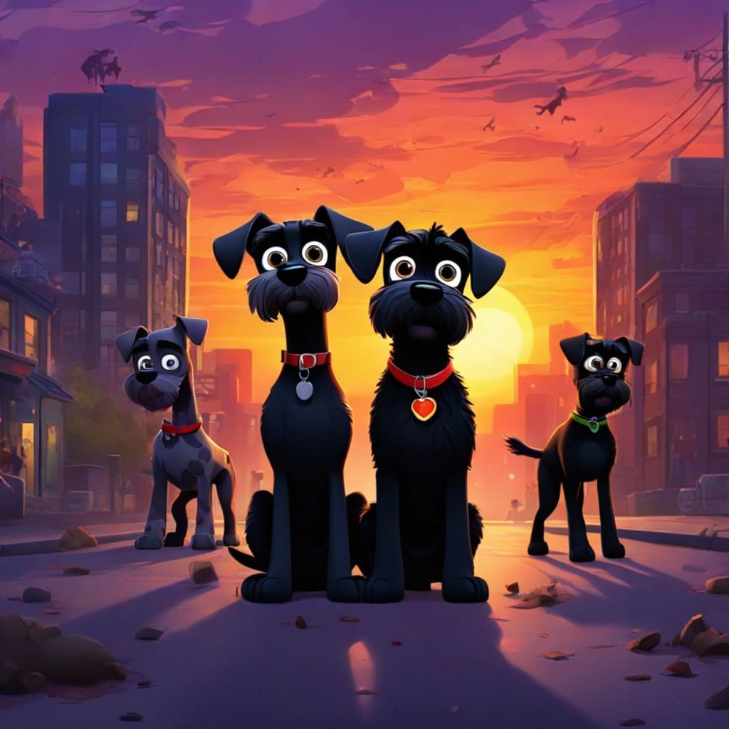 Ben had two loyal companions, Zoey and Lilly, his black miniature schnauzers. Zoey, with her big bright brown eyes, was always happy and loved to smile. Lilly, on the other hand, was petite and very pretty, with her black and silver fur. Together, they were an unstoppable trio, ready for any adventure that came their way.