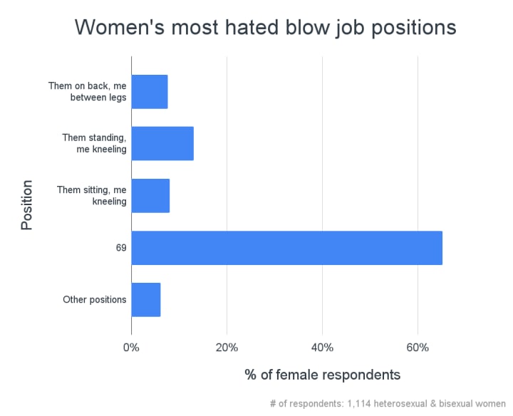 A questionnaire on women’s favorite and least favorite blowjob positions yielded these results: