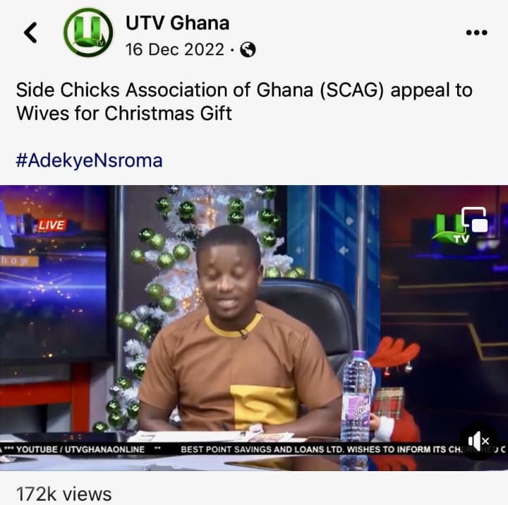 Churches are filled with women and children on Sundays. There is actually an overwhelming large number of women filling church pews in Ghana. Where a phenomenon of having children out of wedlock with married men is also common practice. The side-chick jokes even spill over into the media, in a country that is self-proclaimed Christian.
