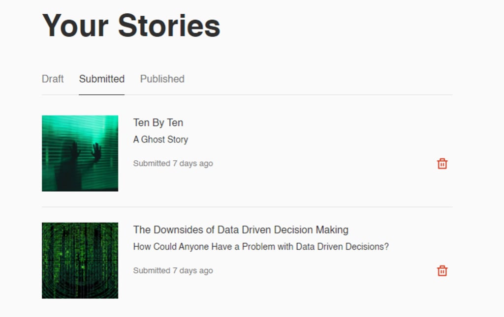 If you're not seeing your story published, it's also possible that something just needs to be edited before we're able to publish it. In this case, you'll also receive an email to the address associated with your account letting you know that your story requires edits before we can approve it."