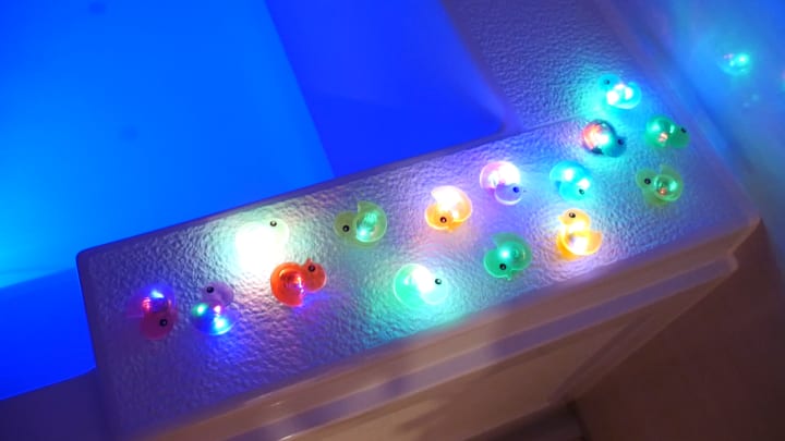 I ran a bath with the lavender powder and the LED lit rubber duckies that were also a free rental with the room. There were even lights in the Jacuzzi making it an amazingly aural and visual experience.