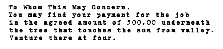 “Genius,” Nancy commented. “But what do you think they mean by ‘payment for the job’?”