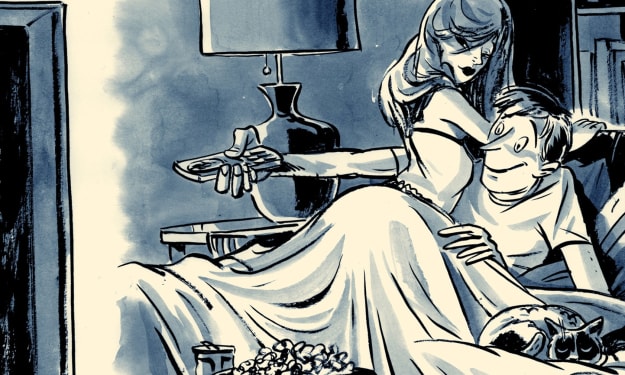 Outside Peter had watched the whole thing. He had become aroused, which was unusual for him on a job. He rubbed his crotch and continued to watch through the window. He was distracted and hadn’t noticed the door next to him open. The man had seen him near the window, and he got up to investigate. Peter was pulled inside the house and the door slammed behind him. The man was outraged. He demanded to know who Peter was and why he was staring through the window. Peter told him what the situation was and why he was there. The wife was scared. She didn’t know that her husband had any incline that he suspected anything. Peter told her everything. They all sat down together trying to calm down. Jane was sat next to Alex (that’s what they identified themselves as). Peter sat opposite. Jane was holding Alex’s hand and he was gently rubbing her hand. There looked to be a special spark between them. Jane started to reveal why she had started to see Alex in the first place. Simon, her husband, was abusive. He had verbally and physically attack her on numerous occasions and she had sought comfort from Alex. Her husband had controlled her completely by not letting her out alone other than to go to the gym. He would wait outside until she was finished then take her home. She had started to sneak out whenever he was at work. She bought all new clothes and hid them where Simon would not find them. She had met Alex online in a chat room that discussed domestic violence. She had managed to get out of the house a few times to meet Alex in person and they had hit it off. She leant over and kissed his cheek. A warm smile spread across her face as she looked at him. Peter noticed that Alex wrapped his arm around her and pulled her close. He kissed her head and she reached up to kiss him on the lips. Her mouth opened and she slipped her tongue into his. They held each other close in a deep passionate kiss.