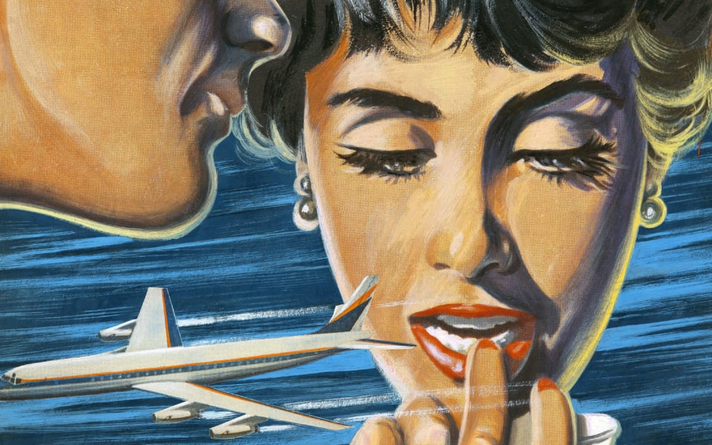 It was midnight. She was a subdued girl, not pretty or ugly, seemingly plain, sat beside him when the cabin lights were lowered and conversations gave way to the time of day. She had not said good evening, barely looked at him, and resigned to any objections that might be made as she approached the seat. When the flight attendant offered blankets, the young woman opened her thin mouth in a soundless mew of thanks. He was aware that she twisted her body, several times, to look back where mama and sister were sitting some rows away but she couldn’t have been able to see much. He could hear her swallow, and sigh, as if they were in bed together.