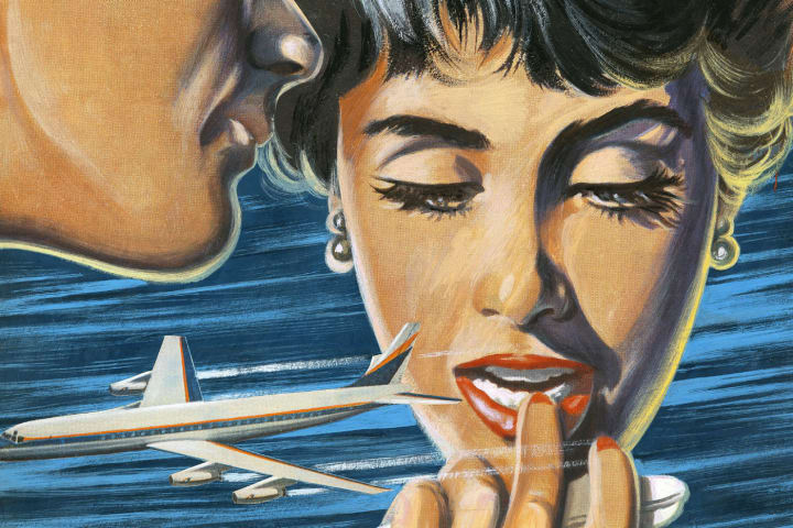 The plane was quiet, but you could tell not everyone had settled for the night. The flight attendant, with her blonde hair, passed silently down the rows in surveillance and the exchange between them stopped until she had gone, the hand waiting patiently on the thigh. Then, despite the fact that there was still the occasional movement that showed others were still awake, and an old man strolled slowly by on his way to the lavatory, the hand took up the thread of communication.
