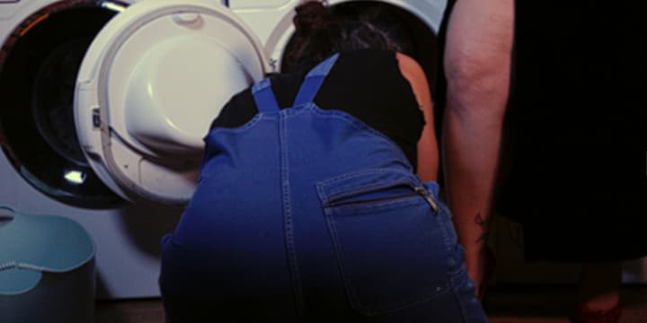 Getting into it: Awwww, cute. They love each other. Also at least one of them loves that wrench. And they figured out why the washing machine wasn't working? Fantastic.