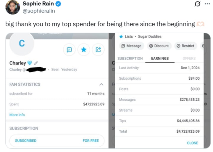 One of her most notable fans, reportedly named Charley, is said to have spent a jaw-dropping $4.7 million on her content over just 11 months, highlighting the intense loyalty and financial devotion of her audience.