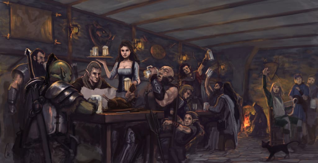 Amala placed the beer mugs down onto the wooden tabletop, splashing the precious golden liquid in her rush. The drunkards didn't even notice her mistake, too far gone in their cups for that. One of the hairier men grabbed Amala by the ass and pulled her towards him in an animal gesture, at once slurring his words and dribbling beer down his chin.