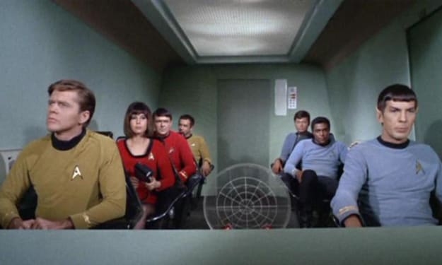 The captain mentions that there are women aboard the Enterprise and the Squire is immediately interested. Why does he assume that the women will be beautiful?! The crew comes up with a plan. They spot that the mirror seems important to Trelane so Kirk challenges him to a duel and shoots the mirror instead. It shatters, angering Trelane, and they beam back to their ship. My immediate thought was that if he can just snatch them the way he took Kirk and Sulu, then surely he could just do so again immediately. But I tried not to think too hard about that. Maybe he really has to psyche himself up for that and it takes ages and lots of energy.