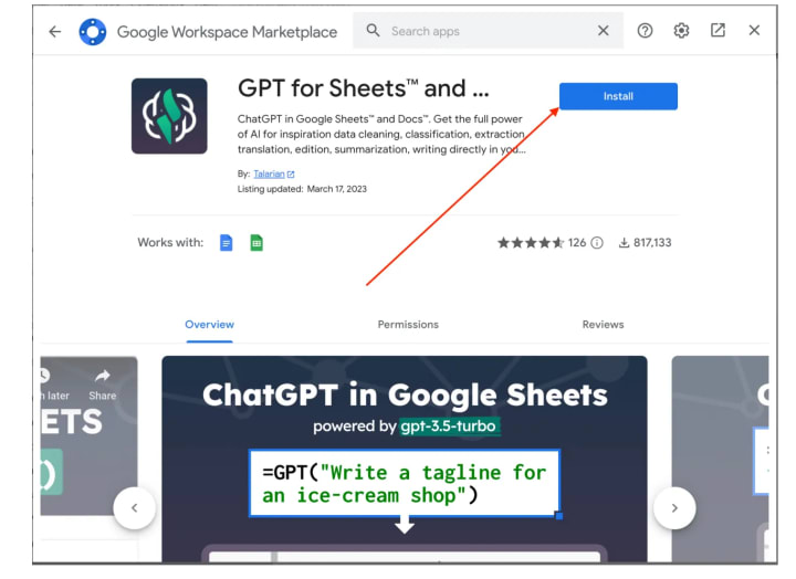 1. Install GPT add-on for Google Sheets
