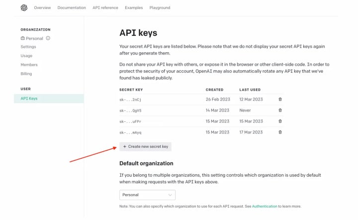 3. Generate an API key: