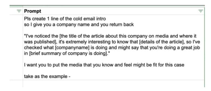 Now you need to add your prompt in a Google Sheet cell: