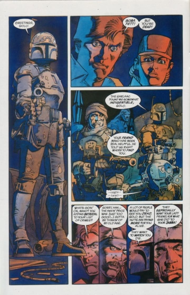 Boba Fett surviving the sarlacc pit has always been something fans easily believe. Ever since he first died in Return of the Jedi, many fans have refused to believe that the famed bounty hunter died so easily. So in many comics, first in Marvel but most prominently Dark Horse's Dark Empire, Boba Fett returned and said he survived the sarlacc pit through various means, and thus would return a few more times in post-Episode VI material. This would happen again in The Mandalorian season 2, which revealed that Boba Fett in canon had also survived his encounter with the great sarlacc and would now get his own spin-off in the form of The Book of Boba Fett.