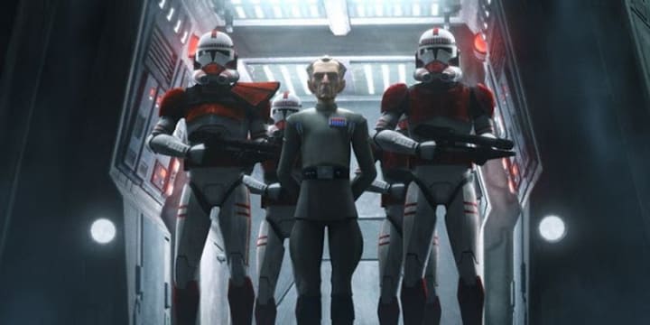 John Williams and Star Wars are synonymous since Williams created such a beautiful masterpiece soundtrack for A New Hope. And the Star Wars TV shows have often utilized elements and bars from John Williams’ scores to call back to key moments from the main movies. Of course, The Bad Batch does this as well. If you are listening to the soundtrack underneath the scene when Palpatine is giving his ominous speech to herald the dawn of the Galactic Empire (the same speech, incidentally, given in Revenge of the Sith), you can hear a few bars of the iconic "Imperial March" theme underscoring the important moment and giving the viewer a little taste of what might be coming.