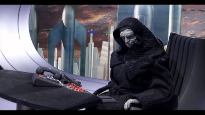 Many were surprised when Robot Chicken introduced a more human and emotional side of Palpatine, one that entertains company and complains about his life to his barber. The “Emperor's Phone Call” sees Palpatine regaling his friends with stories about his fight with Jedi Master Yoda in the Senate building; the three laughing heartily like old school buddies. That is until Palpatine gets a call from Darth Vader that sends the former into a fit.