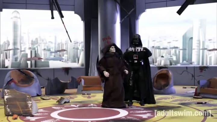 Those with keen ears will notice that Palpatine is voiced by the Family Guy creator himself, Seth McFarlane, who did such a good job that Robot Chicken brought him back for multiple episodes. Don't worry, we'll be mentioning a few of those too.
