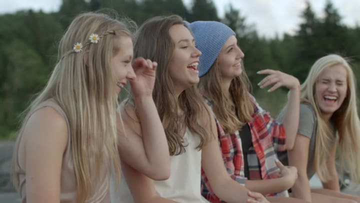 The desert badlands gave way to a road with grass and pine tress. The normally black asphalt changed to white concrete, and behind them, no desert could be found. The girls began to get scared, knowing that they never saw these sights on the way to the event.