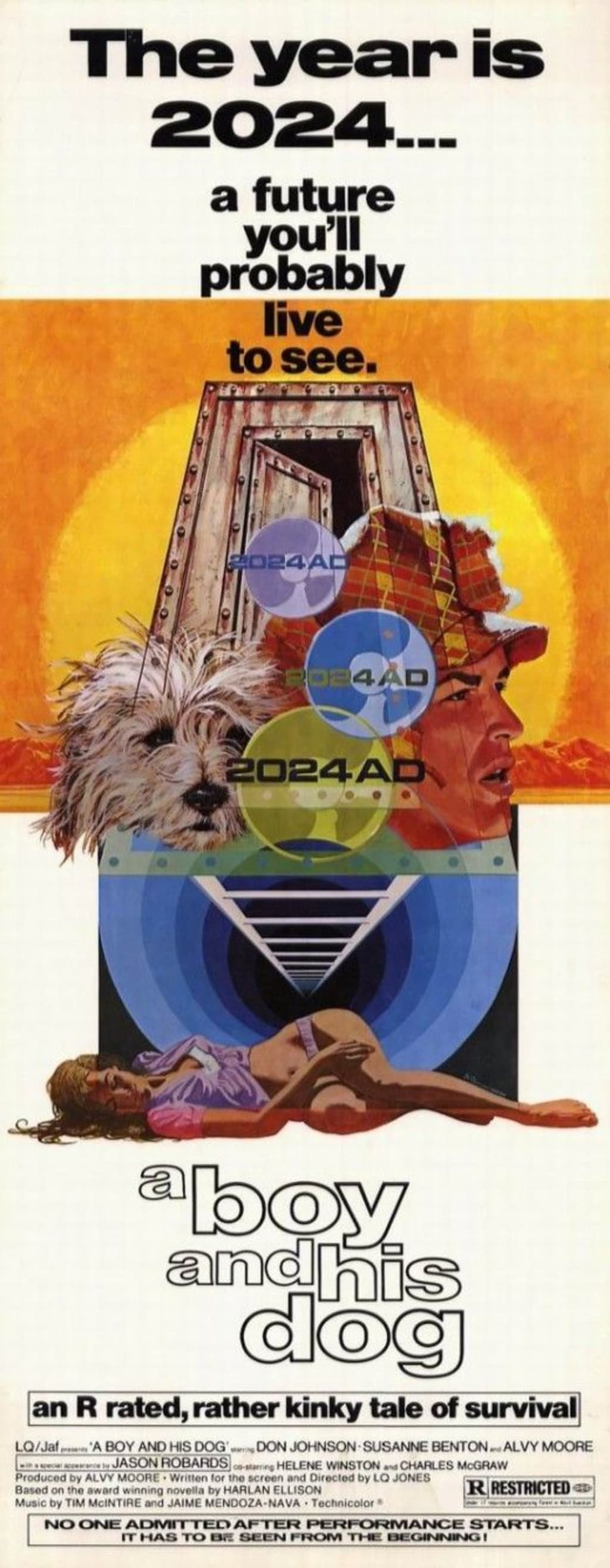 Vic (Don Johnson) and his dog Blood (voiced by Tim McIntire) are a duo that wanders the apocalyptic, Mad Max wastelands of the far-flung year of 2024. There has already been a nuclear war (everything is pretty much desert), and bands of "Rovers" rove in packs to find women and canned goods. Scavengers, scurvy dogs they are. It's not a nice place.