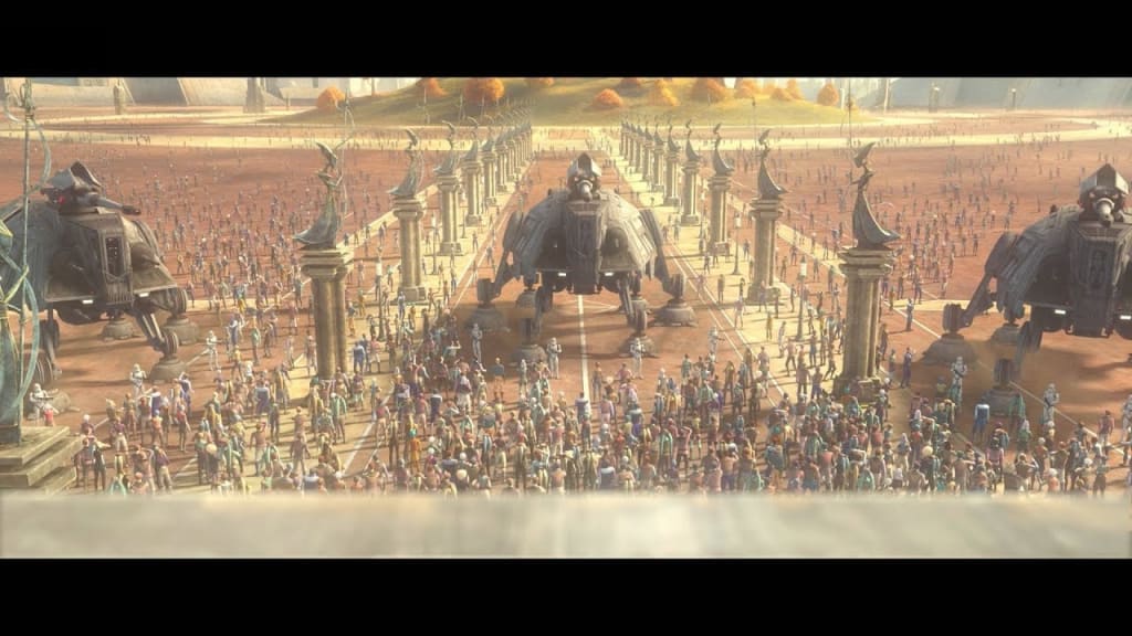 In "Common Ground", the tenth episode of the first season of Star Wars: The Bad Batch, we see a crowd of civilians on the planet Raxus protesting their government's recent collusion with the Galactic Empire. In response to their defiance, the world's new Imperial leaders have the protesters cornered by AT-TE walkers and broken up by clone troopers. Many fans online have pointed out the clear parallels between this scene and the infamous protests and massacre that occurred in Tiananmen Square, Beijing in 1989. While Star Wars is certainly no stranger to referencing real world events, this particular parallel was met with criticism from fans and particularly fans of color, who felt its emulation of the protests was mostly surface level and inadvertently lent itself to sinophobic tropes especially with the planet's Imperial leader Captain Bragg being coded as Asian and being opposed by non-Asian rebels. Sadly, for every strong political parallel Star Wars gives us, there are also a handful of problematic ones such as the one described above.