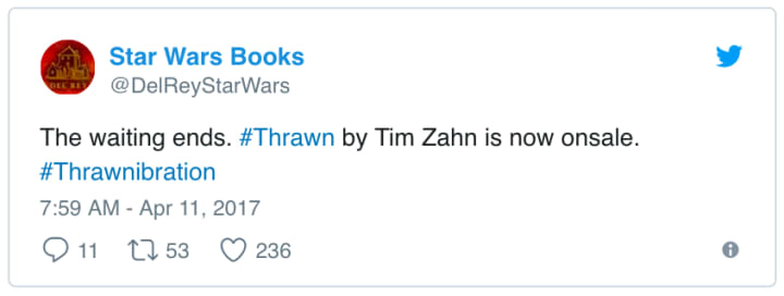 Ultimately, Thrawn is something of a masterpiece. It marks the triumphant return of Timothy Zahn, and allows us to perfectly reconcile the Thrawn we saw in Rebels with the character we've loved since 1991. It also sets a pattern for Lucasfilm; we now know how they'll adapt even core characters into the new canon. Incredibly, this new backstory sits comfortably with almost the entirety of the old Expanded Universe, just as it does with the new canon. That's sure to make this book a hit with fans of old and new alike!