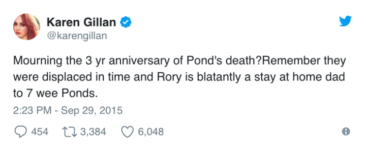 Back in 2015, it marked three years since Amy and Rory bowed out of the show. On September 29th, 2015, both Karen Gillan and Arthur Darvill took to Twitter to reveal how their life was going, and it's pretty surprising. Well, Arthur's Tweet isn't as surprising.