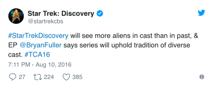 So if Discovery decides to go the full-out all aliens, all the time route, we could see some very interesting strange new life and new civilizations, and cool new faces.
