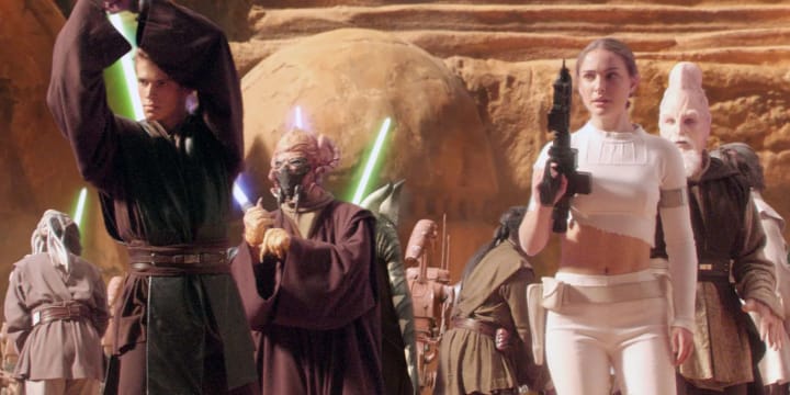 I found this to be an improvement over its prequel predecessor. It corrects a few of the mistakes of the first by having a bit more action, less Jar-Jar, and less political mumbo-jumbo, but what we get instead is a very cringey, unrealistic romance between Anakin and Padmé.