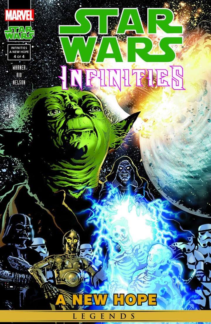 The 4-issue series of A New Hope posits what would have happened if Luke was unsuccessful in destroying the Death Star at the end of the movie. In the comic, Luke fails to complete his mission in the comic and only slightly damages the first Death Star. Because of this, Admiral Tarkin used the Death Star's primary weapon to destroy the rebel fleet at Yavin 4, displacing the remains for at least 5 years. During this time, Luke meets up with Yoda to begin his Jedi training while Leia trains with Palpatine and Darth Vader to become a Sith Lady.
