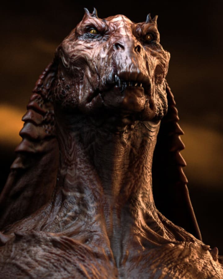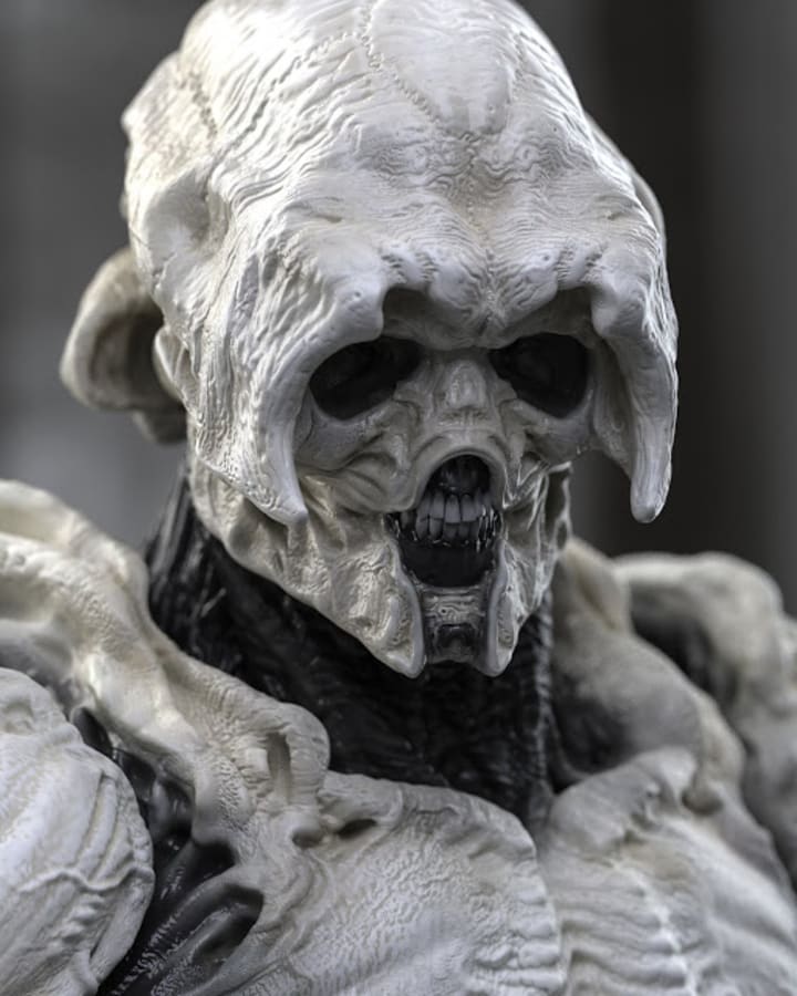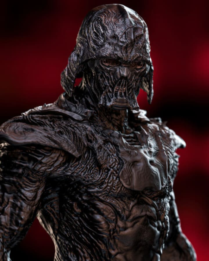 Of course, the most iconic villain of all time makes an appearance in this demented art show. With the piece entitled Necro Dominus, Cassidy shows us what Vader could look like after anther trip to a Mustafar lava river. The iconic armor now appears melted and warped to further match the shell of a man trapped inside. With his breathing apparatus burnt away to reveal the evil, skull-like grin, the Dark Lord of the Sith looks as though he just stepped through the Gates of Hades. The combination of textures in the armor, as well as the tighter, more fitted look of the helmet, make this rendering feel as though removing the black armor would peel the skin along with it.