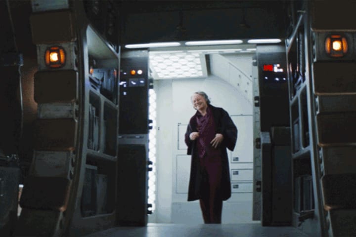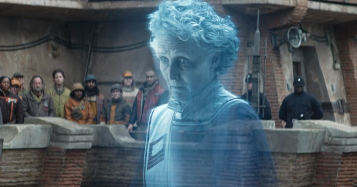 Death could not stop Maarva Andor (Fiona Shaw) from standing up for what she believed in. Via a holographic recording broadcast at her funeral by her beloved droid B2EMO in full view of Imperial presence, Cassian’s beloved mom rallies her fellow Ferrix citizens from beyond the grave to fight against the darkness that is slowly but surely engulfing them. (Episode 12, “Rix Road”)