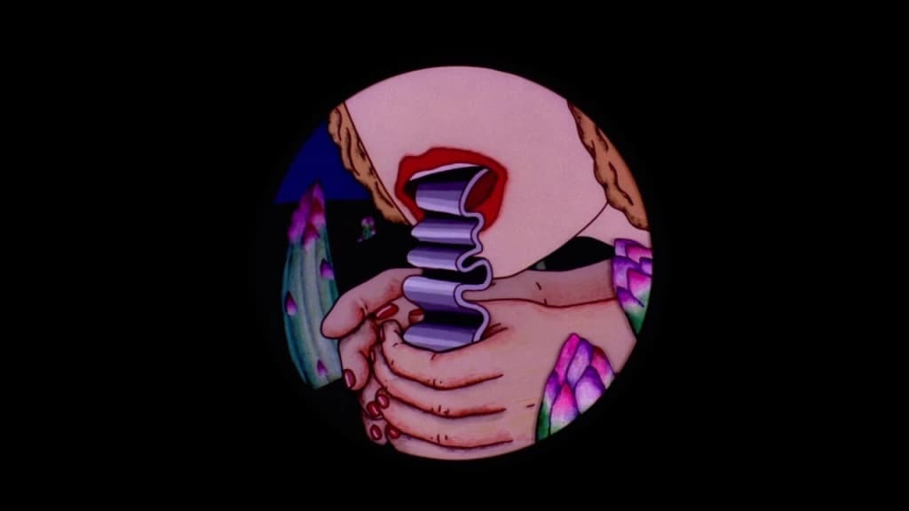 Stylistically, the bleak, dark, industrial gothic landscape presented in Eraserhead, with its beautiful black-and-white images of desolation and biological distortion and decay, couldn't be further from Asparagus, which is a short (18 minute) blast of kaleiodoscopic psychedelia. Be that as it may, the two films evoke a similarly dream-like world, one involving a protagonist whose identity is one of a variable, shifting, unsettled nature.