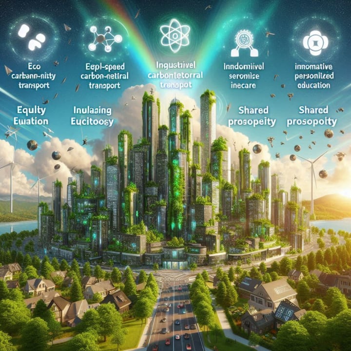 "Humanity has created a virtual utopia of impressive achievements for themselves over time. A world where technology and nature coexist in seemingly perfect harmony. Cities gleam with eco-friendly skyscrapers powered by renewable energy, surrounded by lush greenery and interconnected by high-speed, carbon-neutral transport. Healthcare is universally accessible, aided by advanced AI and nanotechnology, eradicating most diseases. Education is immersive and personalized, fostering creativity and collaboration. Society thrives on equality, inclusivity, and shared prosperity, where automation handles mundane tasks, freeing people to explore their passions and strengthen communities. Peace, innovation, and sustainability define this utopia...a vision of humanity at its most enlightened".