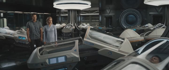 On a routine journey through space to a new home, two passengers, sleeping in suspended animation, are awakened 90 years too early when their ship malfunctions. As Jim and Aurora face living the rest of their lives on board, with every luxury they could ever ask for, they begin to fall for each other, unable to deny their intense attraction until they discover the ship is in grave danger. With the lives of 5,000 sleeping passengers at stake, only Jim and Aurora can save them all.