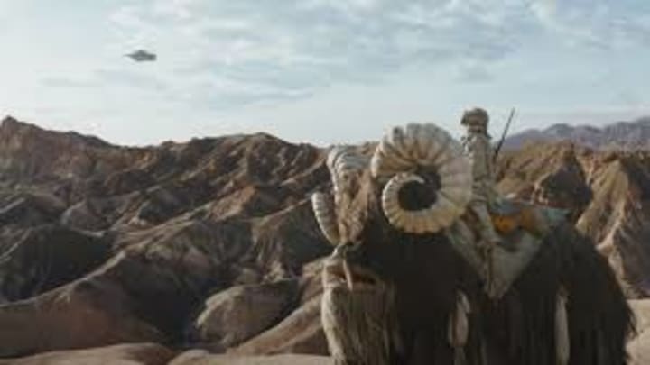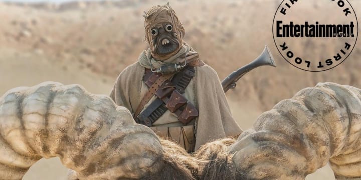 Upon arriving to Tatooine, the Razor Crest is spotted by a Tusken Raider that seems to be the same Tusken Raider we've seen in promo (It's Boba Fett in disguise and nobody can tell me otherwise)