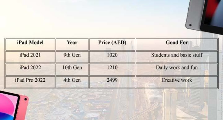 Smart buying starts with knowing current prices in the UAE. Therefore, here are popular iPad prices today: