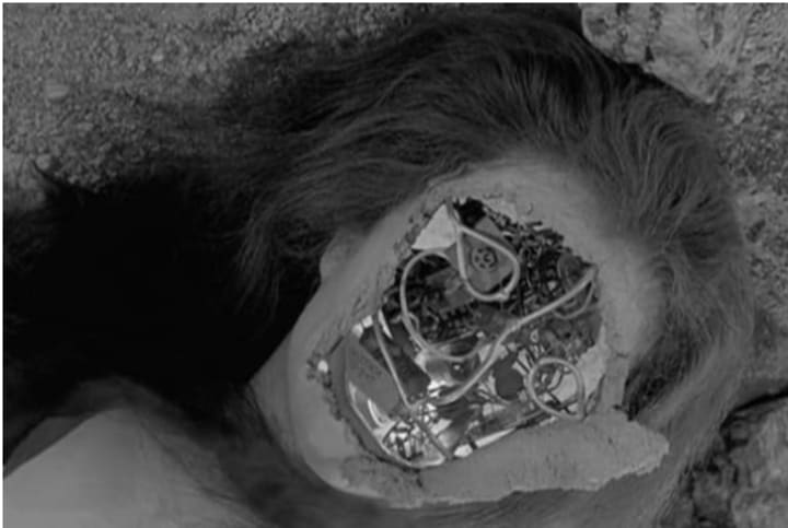 After initially dismissing the robot as a hunk of metal, he soon falls for "Alicia." The ship eventually returns to pardon Corry, but there is only room for him on the shuttle. Refusing to leave Alicia behind, Corry had gone mad due to his isolation. The ship's captain shoots her in the head and calmly reminds Corry that the only thing he is leaving behind is loneliness.