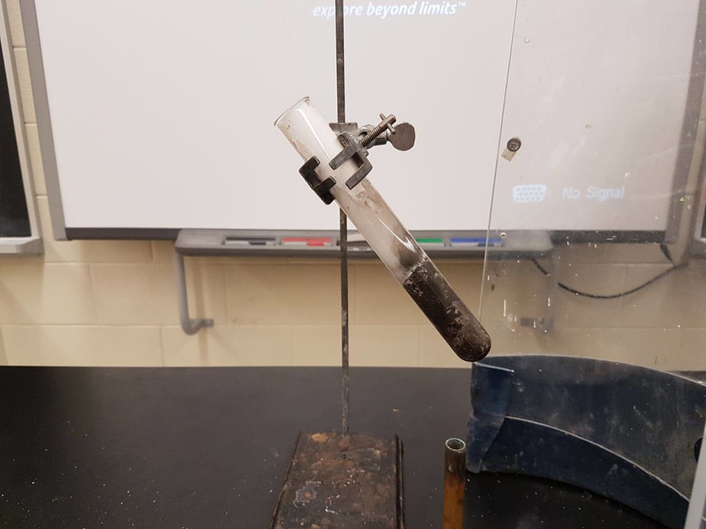 Flammable, strong oxidizer, can produce toxic fumes, toxic if ingested, potential chemical burns, test tube can possibly explode during reaction!