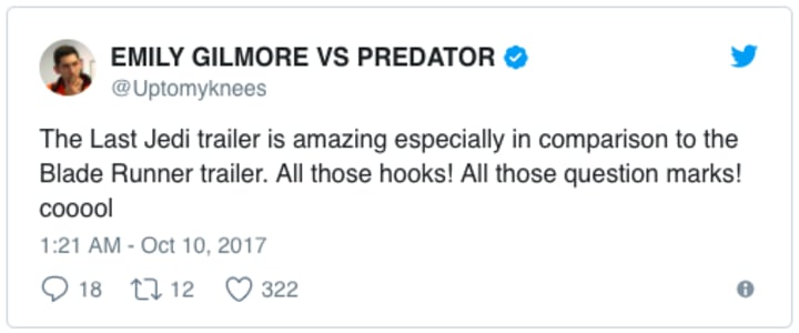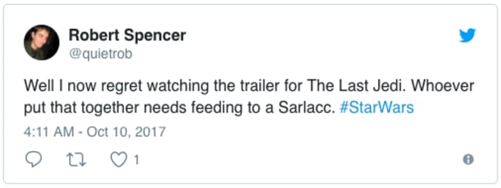 good morning folks, i woke up to the last jedi trailer....im omw to the hospital rn cause that shit near killed me pic.twitter.com/rJ8lmxidWn— william shookspeare (@dracomallfoys) October 10, 2017