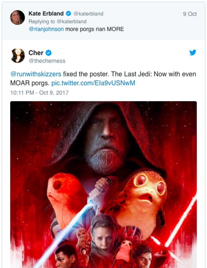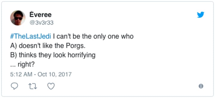However, for this writer, Lucasfilm's parent company Disney summed up everything in their Star Wars-related tweet, which naturally featured a Porg squealing into the camera.