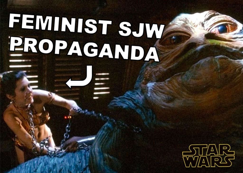 Meanwhile, Jabba enslaves women and he ends up getting killed by Leia, a woman?