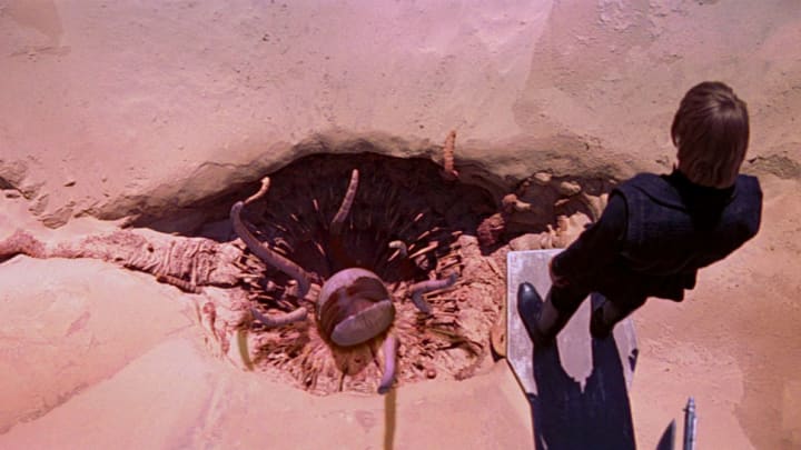 Also, speaking of the Sarlacc pit, Boba Fett died when Han hit his jet pack BY ACCIDENT?! That's so dumb! Fett was such a great bounty hunter and bad guy, and they pretty much just WASTED his movie death!